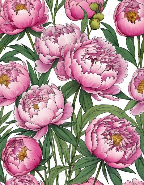 Красочные пионы демонстрируют свои потрясающие цветы в оттенках розового, кремового и кораллового, окруженные сочными зелеными листьями, создавая яркую цветочную композицию. Генеративный ИИ