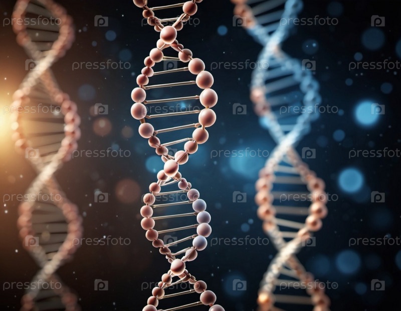 Изучение динамического генетического холста с абстрактными перспективами цепей ДНК, освещенных на темном фоне. Генеративный ИИ