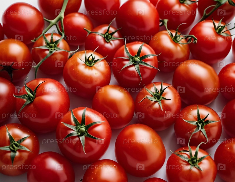 Группа спелых красных томатов. Томаты расположены гроздью. Свет отражается от поверхности томатов, подчеркивая их яркий цвет и блестящую текстуру. Они были недавно собраны. Сгенерированы ИИ