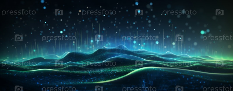 Абстрактный технологический ландшафт с элементами дополненной реальности, виртуальной реальности и искусственного интеллекта для инновационных цифровых концепций