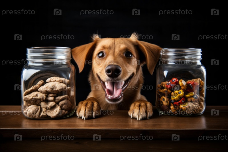 Любопытная собака с удовольствием лакомится любимым лакомством, смакуя вкусную начинку из банки с чистой радостью