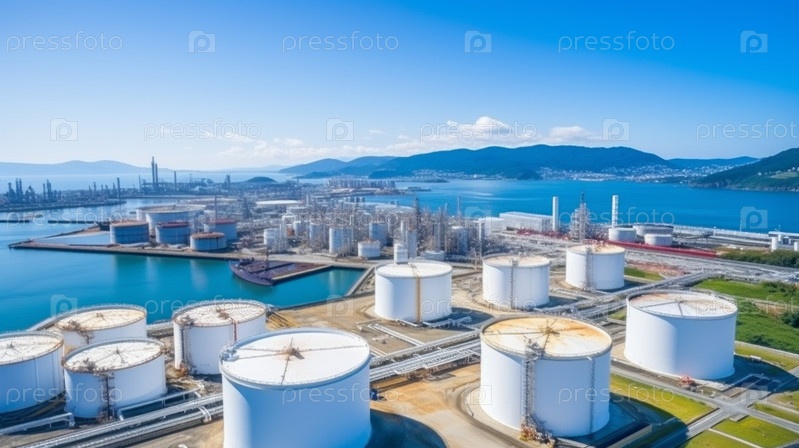 Вид сверху на резервуар для хранения нефти на нефтяном терминале, резервуар для хранения белого масла, химическая нефть, нефтехимический продукт нефтеперерабатывающего завода на нефтяном терминале, коммерческая торговля топливом, транспортировка энергии.