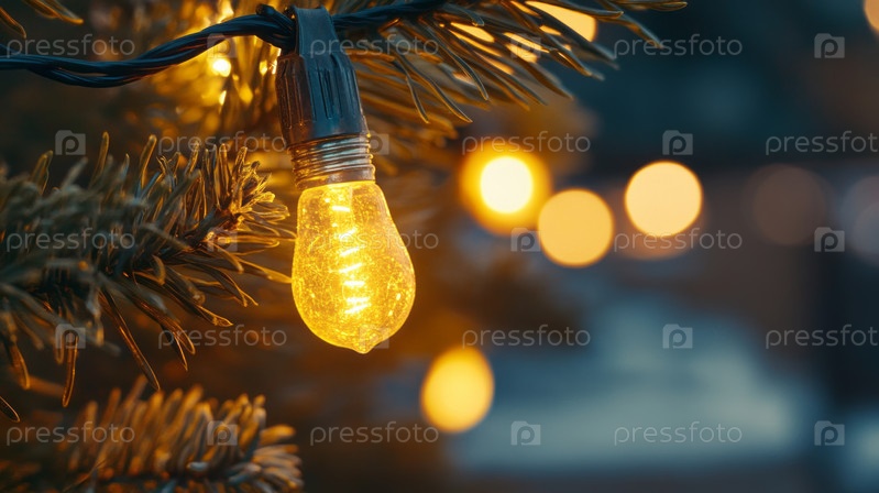 На снимке запечатлены разноцветные лампочки, ярко светящиеся среди праздничных украшений, создающие праздничную и яркую атмосферу