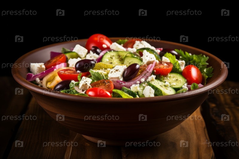 Красочный салат с листьями салата, помидорами, огурцами, морковью и сыром с бутылкой заправки
