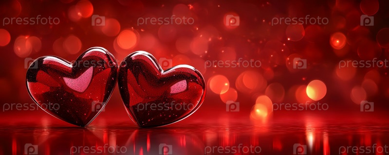Воздушные шары в форме сердец парят среди яркого дождя из конфетти, создавая романтическую и веселую атмосферу праздника