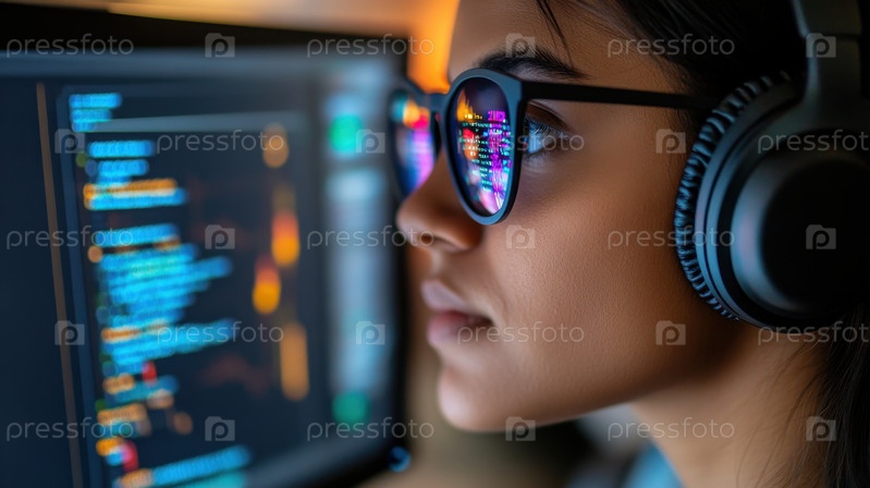 Целеустремленный программист, работающий над разработкой программного обеспечения на экране компьютера