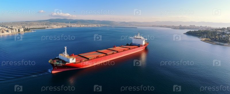 Дрон запечатлел буксир, буксирующий пустую баржу в море, копия космического снимка