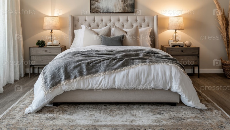 Теплая и уютная спальня с элегантной деревянной мебелью