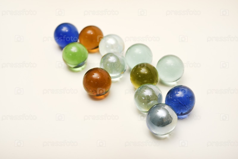 Разноцветные стеклянные шары на белом фоне. Декор выполнен из разноцветного стекла