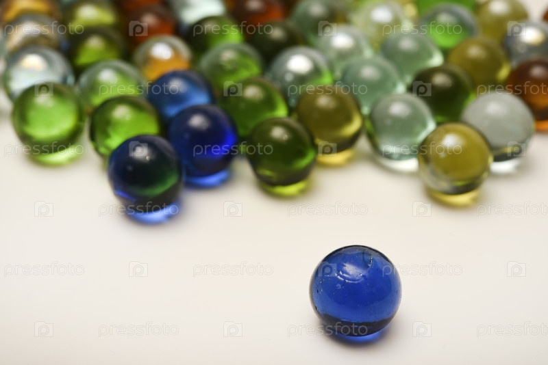 Разноцветные стеклянные шары на белом фоне. Декор выполнен из разноцветного стекла