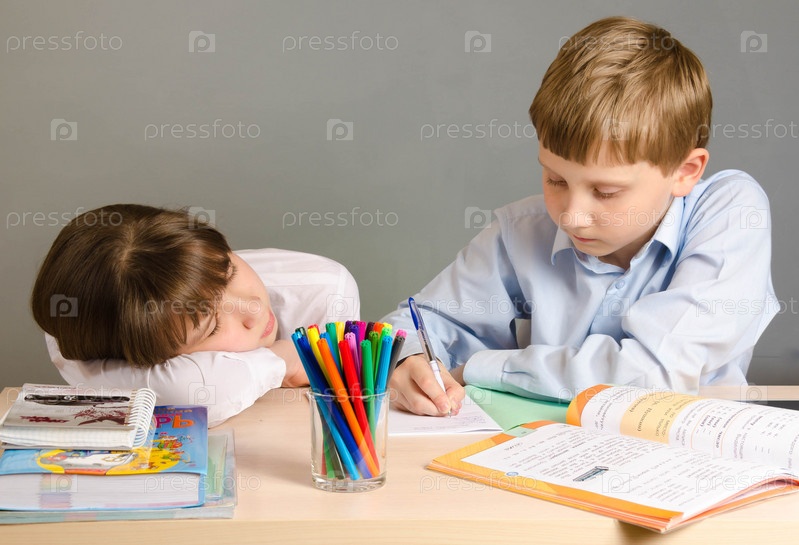 Школьник и девочка за партой