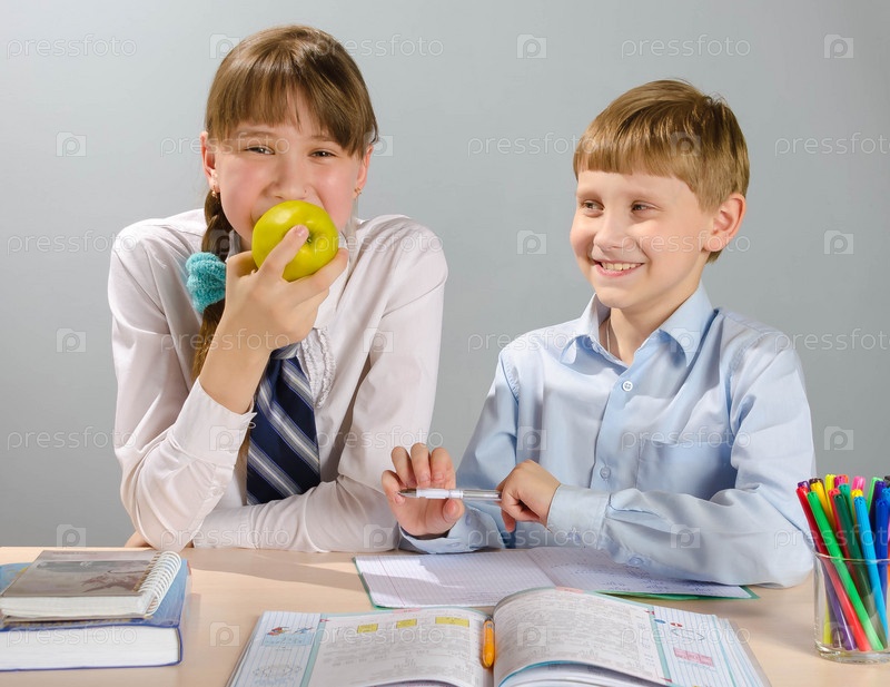 Школьник и девочка за партой