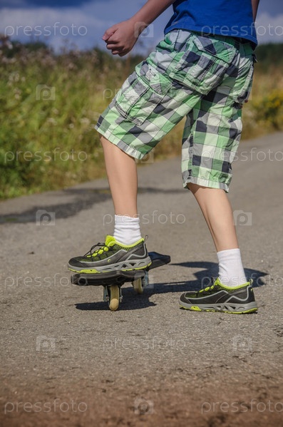 Мальчик катается на скейтборде по дороге