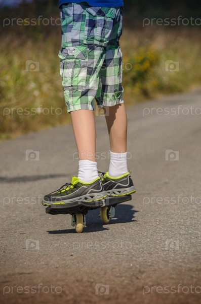 Мальчик катается на скейтборде по дороге