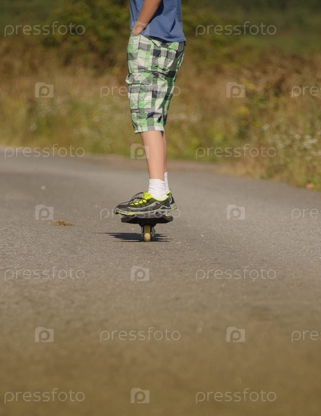 Мальчик катается на скейтборде по дороге