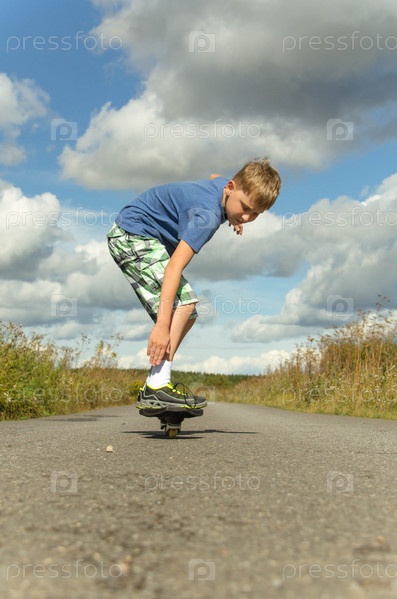 Мальчик катается на скейтборде по дороге