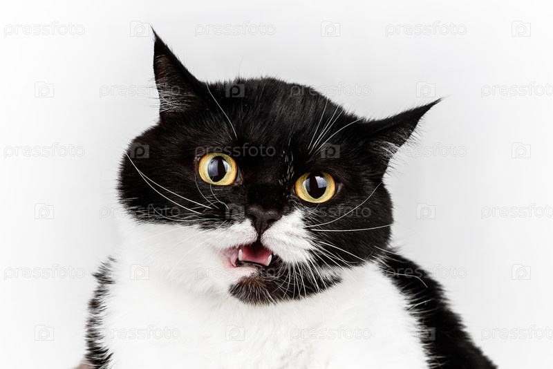 Красивый черно-белый кот крупным планом