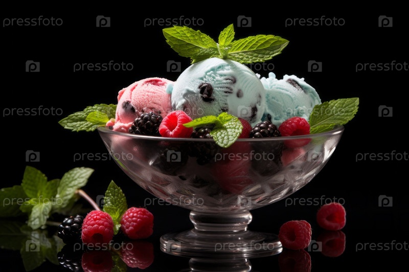 Мороженое разных вкусов в миске, аппетитное, десерт