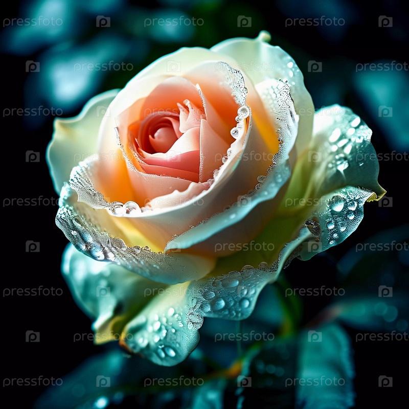 Прекрасная розовая роза с мягкими лепестками блестит капельками росы в пышном саду, освещенном нежным светом раннего утра. Генеративный ИИ