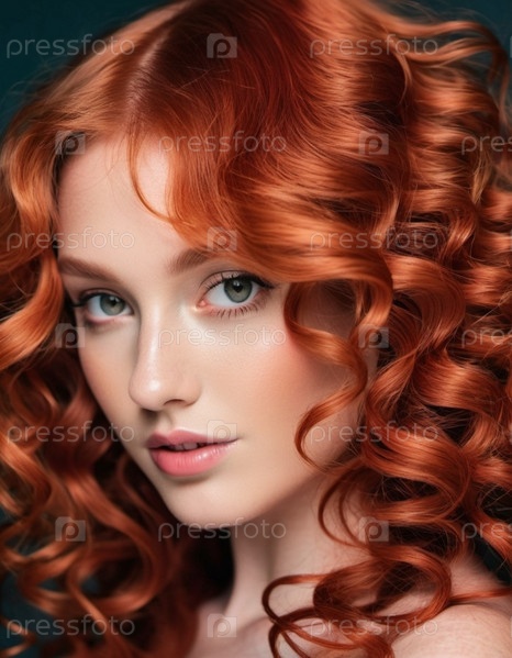 Яркие рыжие локоны красиво блестят при естественном освещении, открывая замысловатые узоры и здоровый блеск. Крупный план передает текстуру и глубину каждого локона. Красивая молодая девушка. Генеративный ИИ
