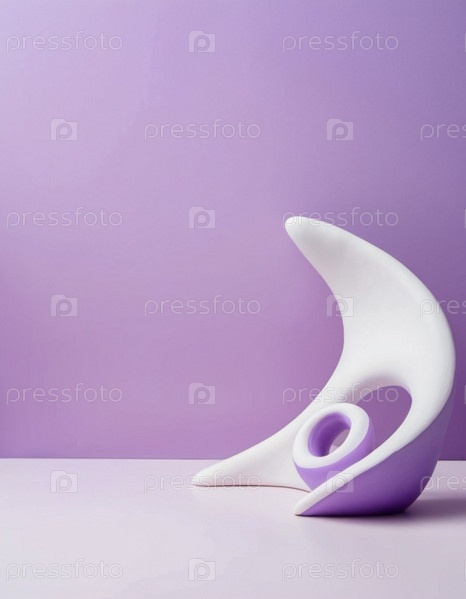 Эта уникальная декоративная скульптура, сочетающая в себе белые и фиолетовые элементы, выделяется на успокаивающем фиолетовом фоне, создавая в комнате художественную атмосферу. Генеративный ИИ