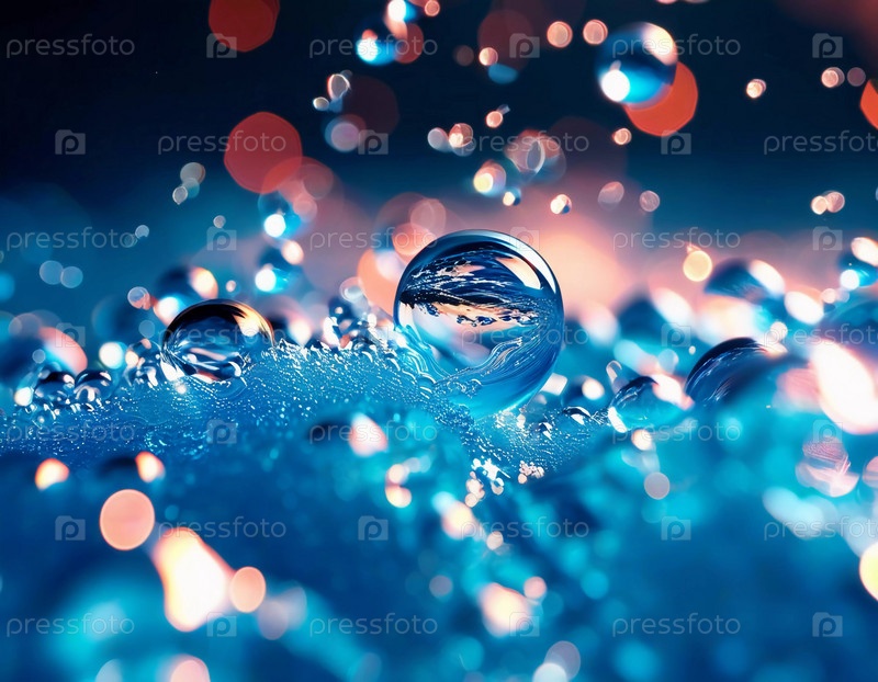 Яркие синие капли воды создают потрясающий всплеск, улавливая энергию и движение в ярком отображении цвета. Момент кажется живым и ярким, демонстрируя красоту природы. Замораживающее движение. Генеративный ИИ