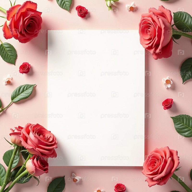 Нежные розовые розы окружают пустое пространство, идеально подходит для написания личных сообщений.Эта прекрасная цветовая композиция добавит элегантность к любому случаю.Фон на день рождения, День матери, День святого Валентина