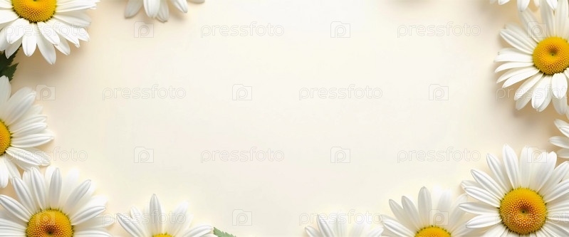 Открытка с прекрасной композицией из белых и желтых маргариток, окружающих пустое место, идеально подходит для личных заметок или специальных сообщений. Она воплощает свежую летнюю атмосферу. Генеративный ИИ