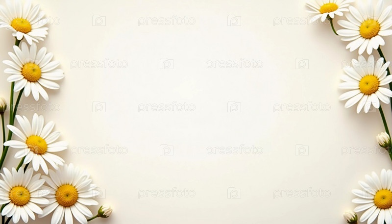 Открытка с прекрасной композицией из белых и желтых маргариток, окружающих пустое место, идеально подходит для личных заметок или специальных сообщений. Она воплощает свежую летнюю атмосферу. Генеративный ИИ