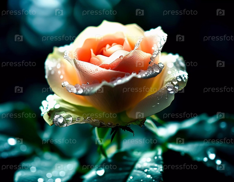 Прекрасная розовая роза с мягкими лепестками блестит капельками росы в пышном саду, освещенном нежным светом раннего утра. Генеративный ИИ