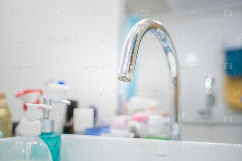 Кран в ванной, размытый фон