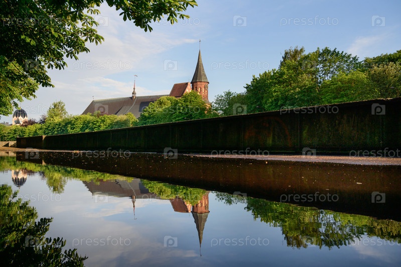 Калининград. Вид на исторические достопримечательности на набережной городской реки Преголи летним дождливым днем 14.06.2024