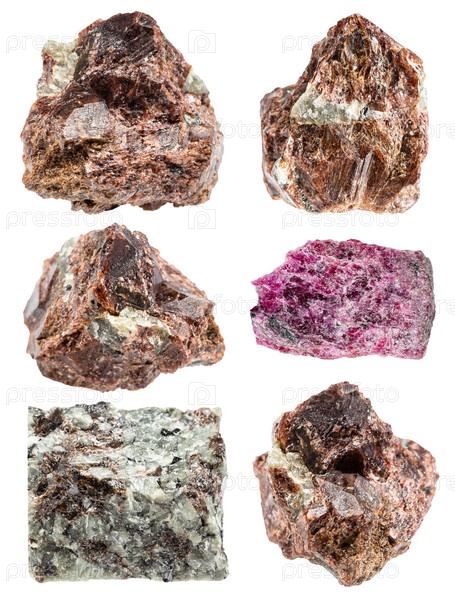 Различные образцы сырых эвдиалитовых минералов изолированы