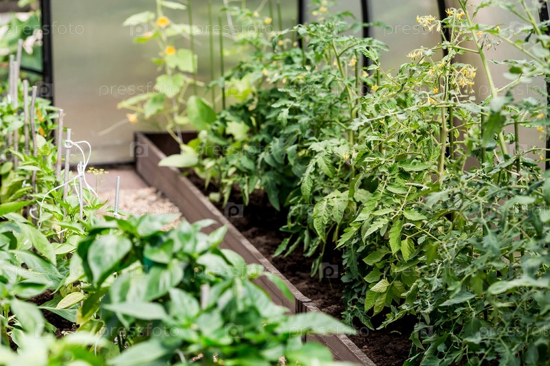 Новая теплица из полиэтилена и поликарбоната с новыми грядками из древесно-полимерного композита с рассадой томатов. Сезон садоводства. Теплицы на дачном участке