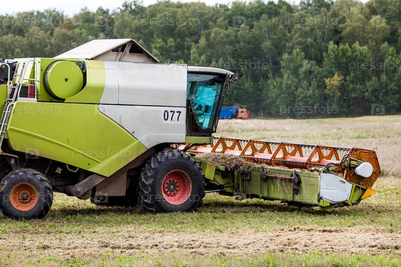 Сельскохозяйственная промышленность. Комбайн убирает урожай с поля. Концепция переработки и сбора. Сельский пейзаж. Сельскохозяйственная техника