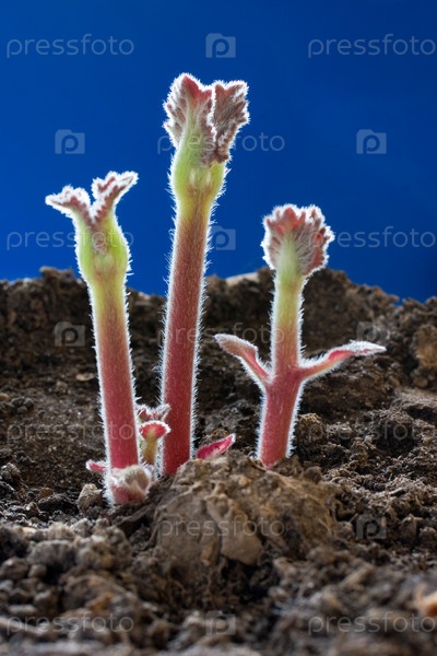 Молодые ростки в земле весной