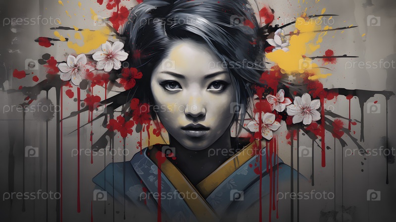 Яркий и абстрактный портрет женщины с выразительными брызгами краски желтого и синего цветов