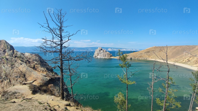 Скала Шаманка на мысе Бурхан острова Ольхон на озере Байкал