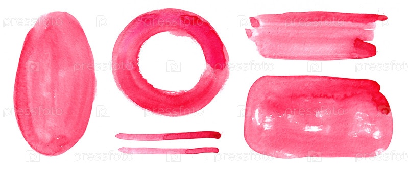 Абстрактные красные акварельные формы, включая круг, овал и штрихи на белом фоне. Яркие текстуры кисти идеально подходят для креативных дизайнов и художественных проектов