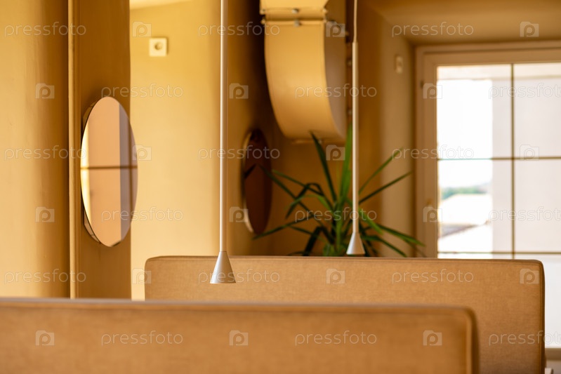 Уютный интерьер кофейни, оформленный в теплых тонах