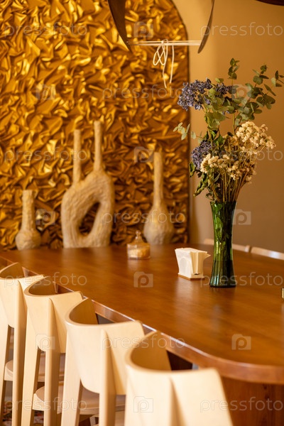 Уютный интерьер кофейни, оформленный в теплых тонах и обставленный уютной мягкой мебелью, создает идеальную атмосферу для отдыха и наслаждения кофе