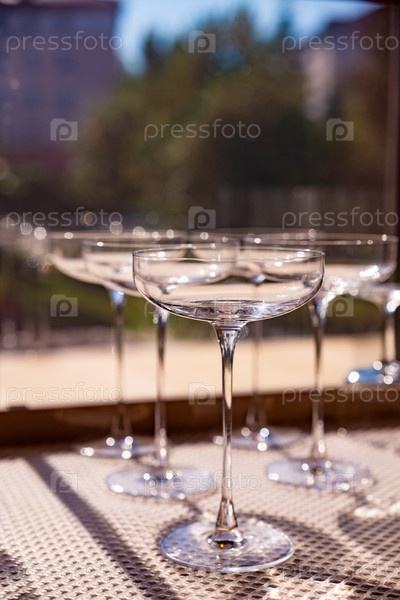Чистые бокалы для вина аккуратно расставлены в ряд