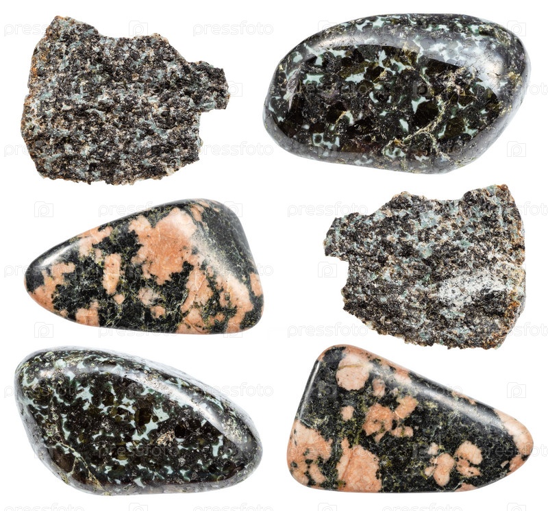 Различные образцы сырых минералов габбро изолированы
