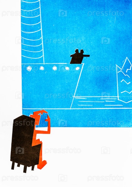 Нарисованный от руки зритель наблюдает за судном и айсбергом