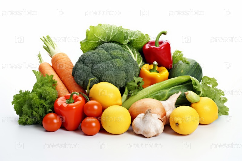 Композиция из фруктов и овощей, изолированных на белом фоне. Красивая широкая рамка со свободным пространством для текста. Коллаж