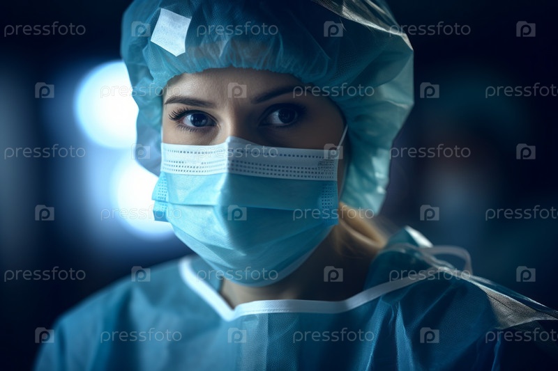 Врач в хирургической маске и перчатках выглядит сосредоточенным и готовым оказать медицинскую помощь