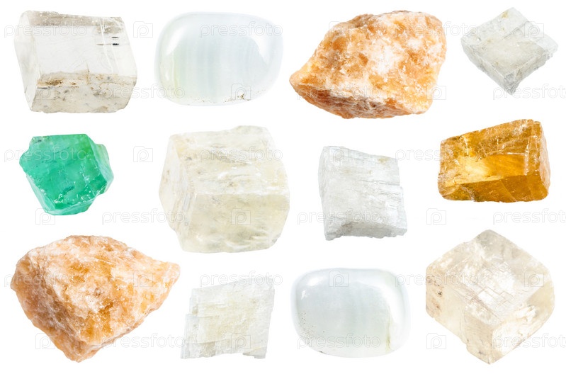 Различные образцы сырых минералов кальцита изолированы