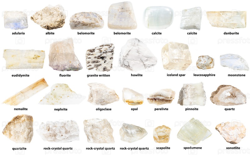 Натуральные белые минералы с названиями изолированы