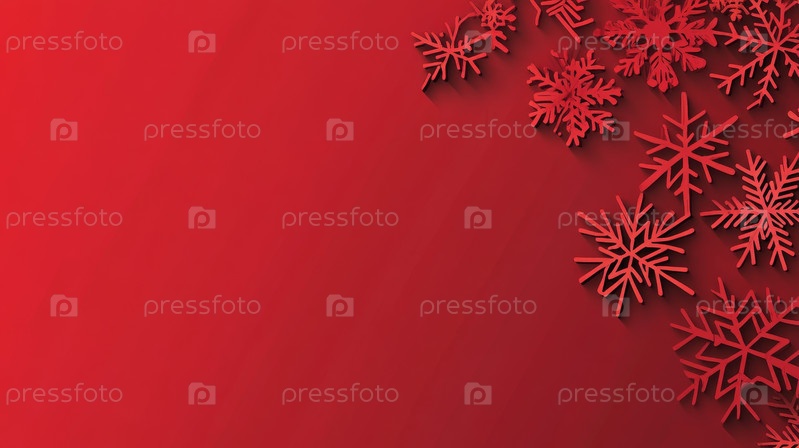 Праздничный узор снежинок на ярко-красном фоне