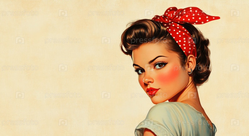 Винтажная иллюстрация женщины с красным платком в горошек